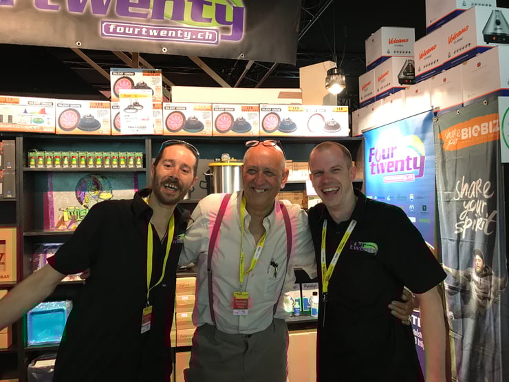 An der Cannatrade 2018 am Stand von Fourtwenty.ch - Javier zusammen mit Manuel und Roman